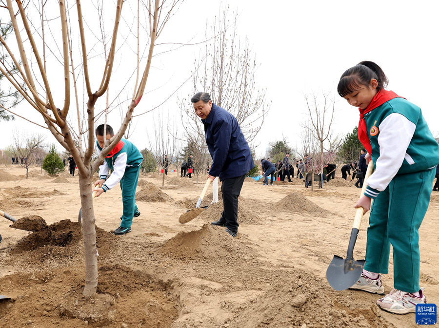 3月30日,黨和國家領導人習近平、李克強、栗戰書、汪洋、王滬寧、趙樂際、韓正、王岐山等來到北京市大興區黃村鎮參加首都義務植樹活動。這是習近平同大家一起植樹。 新華社記者 黃敬文 攝