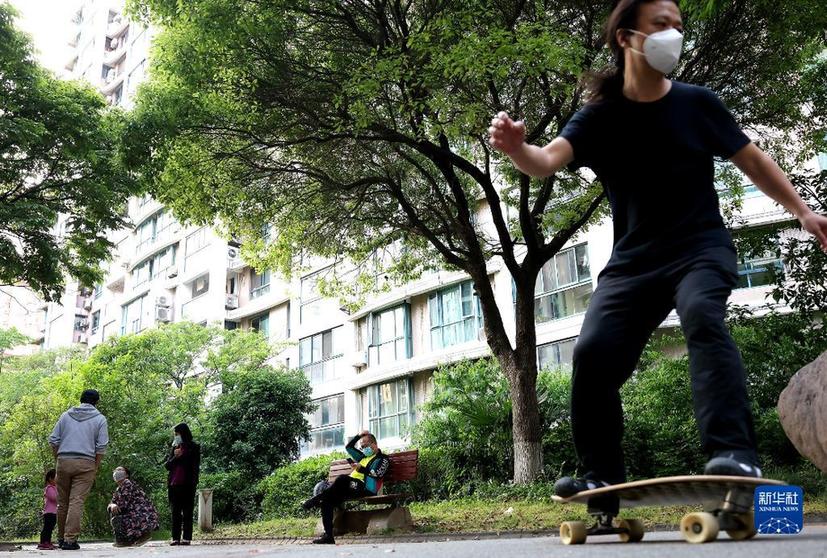 5月17日,市民在上海市普陀區的一個居民小區內享受休閑一刻。新華社記者 陳飛 攝