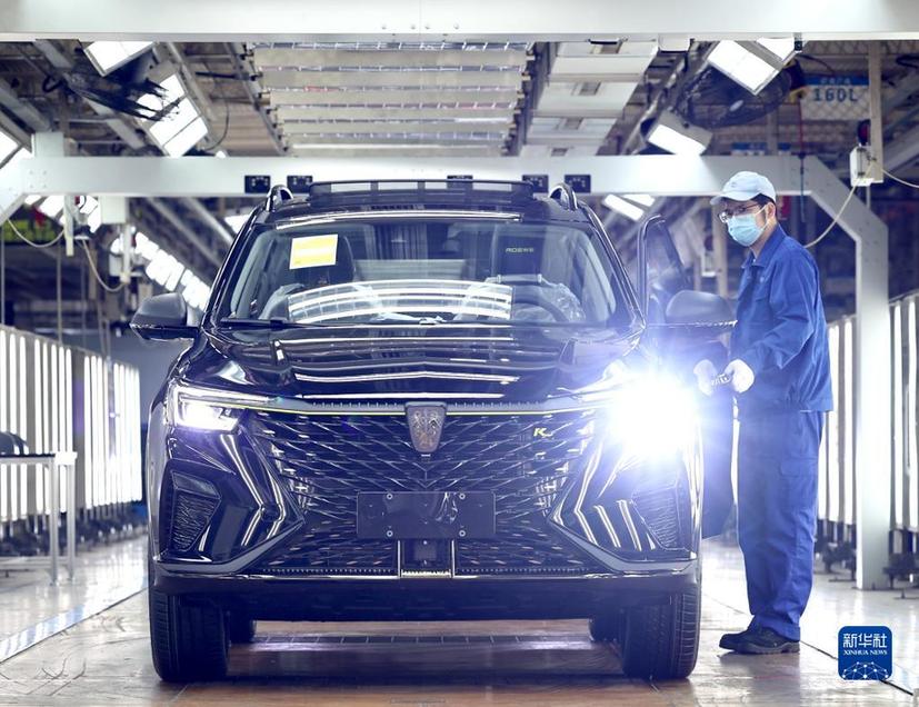 4月23日,上汽臨港乘用車工廠工人在總裝車間工作。新華社記者陳建力 攝