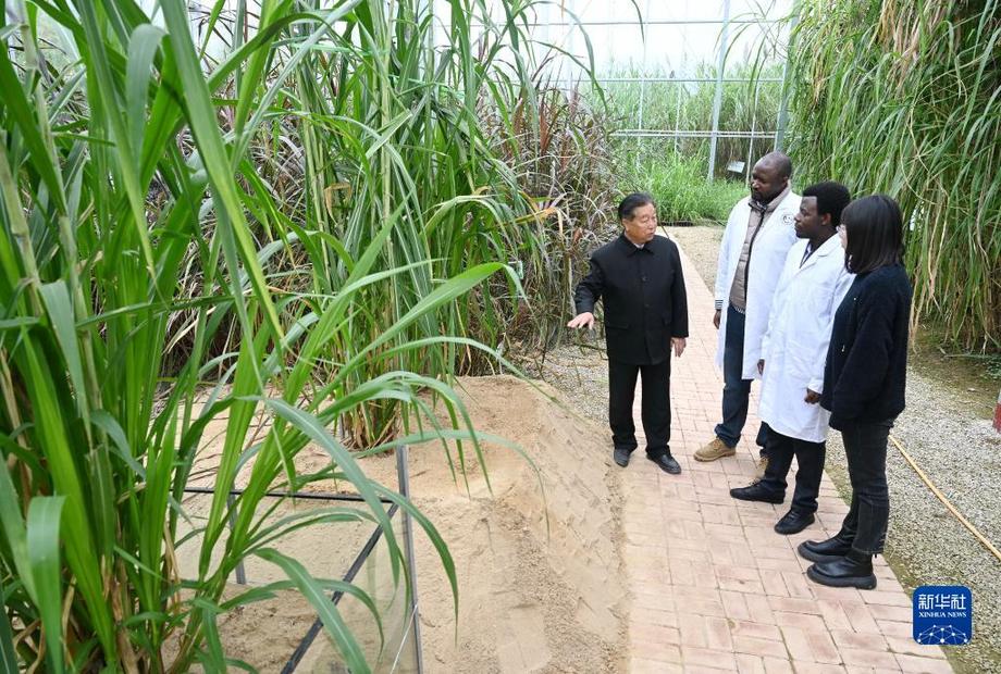 2021年11月23日,福建農(nóng)林大學菌草專家林占熺(左一)在國家菌草工程技術(shù)研究中心菌草種質(zhì)資源圃給外國留學生(左二、左三)講解菌草的種植培育技術(shù)。新華社記者 林善傳 攝