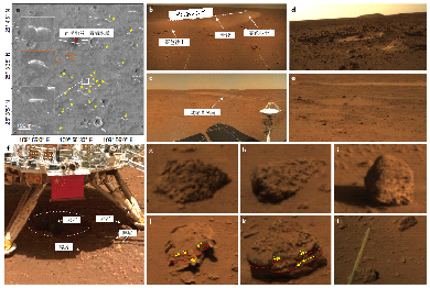圖3 祝融號(hào)著陸區(qū)的火星地質(zhì)特征和巖石。(國(guó)家航天局提供)