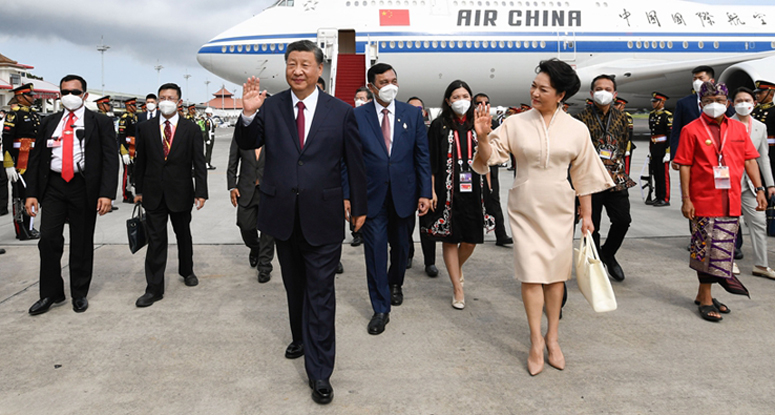 北京西郊機場國旗半垂,氣氛莊嚴肅穆,黑底白字橫幅上寫著:“江澤民同志永垂不朽”“江澤民同志永遠活在我們心中”。習近平和夫人彭麗媛等胸佩白花、臂戴黑紗,神情凝重地在停機坪肅立。