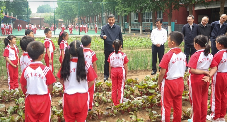 6月5日至6日,中共中央總書記、國家主席、中央軍委主席習近平在內蒙古巴彥淖爾考察,并主持召開加強荒漠化綜合防治和推進“三北”等重點生態工程建設座談會。這是5日下午,習近平在位于烏梁素海南岸的現代農業示范園區考察。新華社記者申宏 攝
