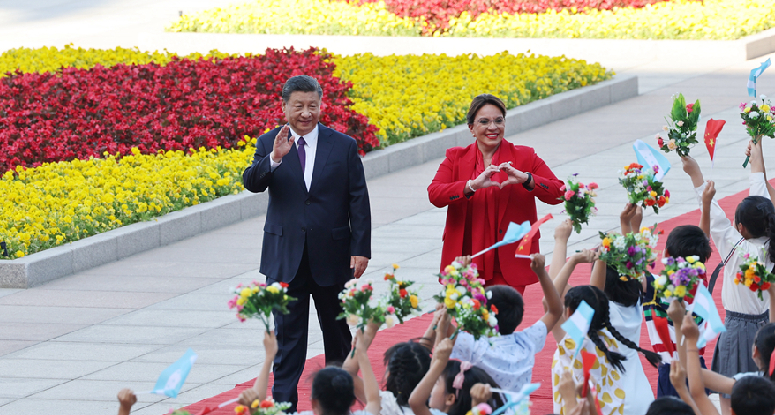 阿巴斯抵達(dá)時(shí),天安門廣場(chǎng)鳴放21響禮炮,禮兵列隊(duì)致敬。兩國(guó)元首登上檢閱臺(tái),軍樂團(tuán)奏中巴兩國(guó)國(guó)歌。阿巴斯在習(xí)近平陪同下檢閱中國(guó)人民解放軍儀仗隊(duì),并觀看分列式。