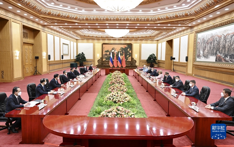 習(xí)近平指出,在雙方共同努力下,中俄關(guān)系始終保持健康穩(wěn)定發(fā)展勢頭,各領(lǐng)域合作穩(wěn)步推進(jìn),兩國世代友好的社會基礎(chǔ)和民意基礎(chǔ)更加牢固。今年3月,我對俄羅斯進(jìn)行國事訪問,同普京總統(tǒng)就深化兩國全面戰(zhàn)略協(xié)作和各領(lǐng)域務(wù)實(shí)合作達(dá)成新的重要共識。發(fā)展中俄關(guān)系是兩國基于各自國家和人民根本利益作出的戰(zhàn)略選擇。中方愿繼續(xù)同俄方一道,發(fā)展守望相助、深度融通、開拓創(chuàng)新、普惠共贏的新時(shí)代全面戰(zhàn)略協(xié)作伙伴關(guān)系,助力兩國發(fā)展振興,推動建設(shè)繁榮穩(wěn)定、公平公正的世界。