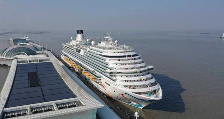 2024年2月2日,一艘集裝箱貨輪停靠在天津港“智慧零碳”碼頭(無人機照片)。新華社記者 趙子碩 攝
