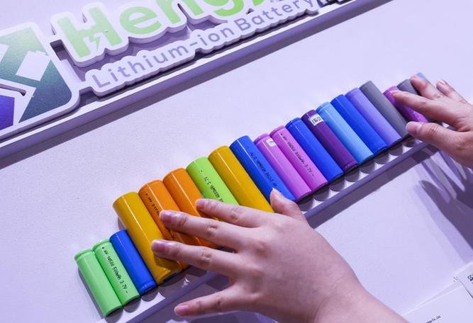 參展商在第135屆廣交會新能源展區布置鋰電池展品(2024年4月15日攝)。新華社記者 劉大偉 攝