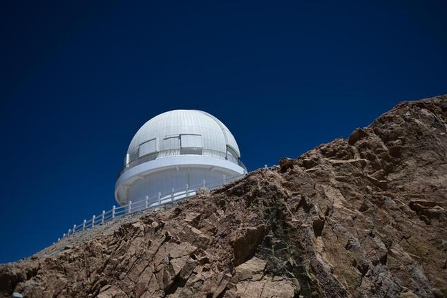 這是在青海省海西蒙古族藏族自治州茫崖市冷湖鎮賽什騰山拍攝的中國科學技術大學和中國科學院紫金山天文臺聯合研制的大視場光學成像望遠鏡——墨子巡天望遠鏡(2024年4月20日攝)。新華社記者張龍 攝